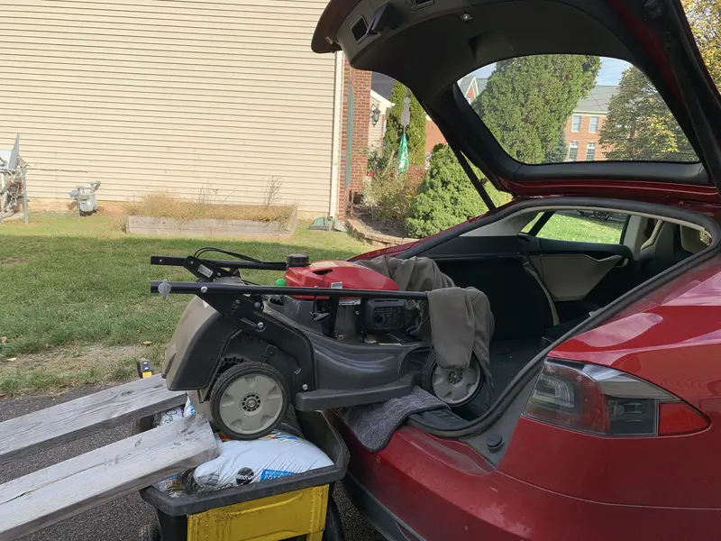 My Honda lawn mower needed repair. My car is a hatchback, but I had no help getting the mower into or out of the car. Here’s what I did…